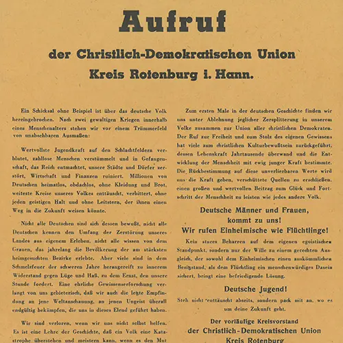 Ende der 40er Jahre erfolgte im Landkreis Rotenburg der Aufruf zur Gründung der Christlich Demokratischen Union. Heinrich Rosebrock aus Ahausen, Rudolf Stein aus Hassel, Albert Wieczoreck, Franz Meise und Bruno Plate aus Rotenburg bildeten den ersten vorläufigen Kreisvorstand der CDU. Neben den Grundwerten der Partei steht die Entwicklung unseres Landreises von Bremervörde über Zeven bis nach Rotenburg im Fokus unserer Politik. Dabei erücksicht wir die regionalen Besonderheiten und die individuelle Entwicklung aller 13 Kommunen.